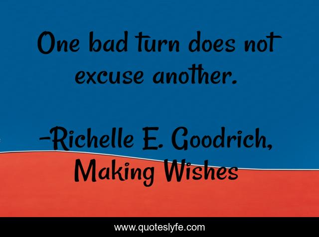 "Richelle E. Goodrich, Making Wishes Quotes." Quoteslyfe.com, 2025. Fri. 05 Dec. 2025. <https://www.quoteslyfe.com/quote/One-bad-turn-does-not-excuse-another-189487>.