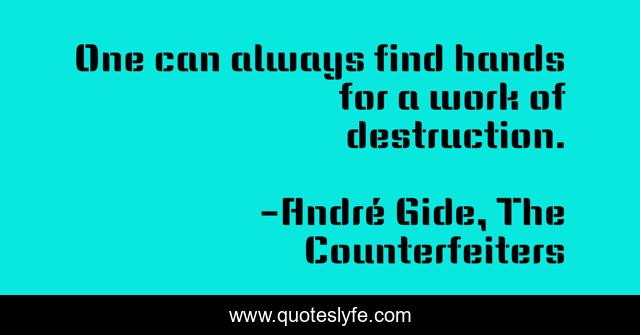 This page presents the quote "One can always find hands for a work of destruction.". Author of this quote is André Gide, The Counterfeiters. .