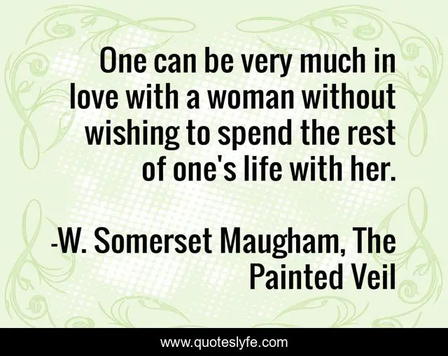This page presents the quote "One can be very much in love with a woman without wishing to spend the rest of one's life with her.". Author of this quote is W. Somerset Maugham, The Painted Veil. This quote is about love, life, marriage, affection, women,.