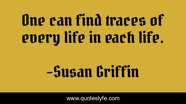 "Susan Griffin Quotes." Quoteslyfe.com, 2025. Fri. 05 Dec. 2025. <https://www.quoteslyfe.com/quote/One-can-find-traces-of-every-life-265785>.