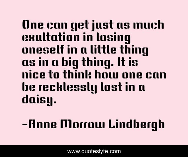 This page presents the quote "One can get just as much exultation in losing oneself in a little thing as in a big thing. It is nice to think how one can be recklessly lost in a daisy.". Author of this quote is Anne Morrow Lindbergh. .