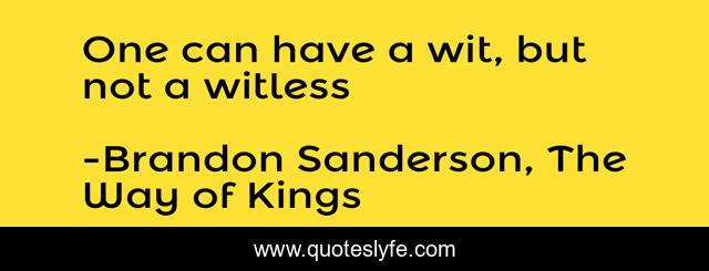 This page presents the quote "One can have a wit, but not a witless". Author of this quote is Brandon Sanderson, The Way of Kings. This quote is about wit, humor,.