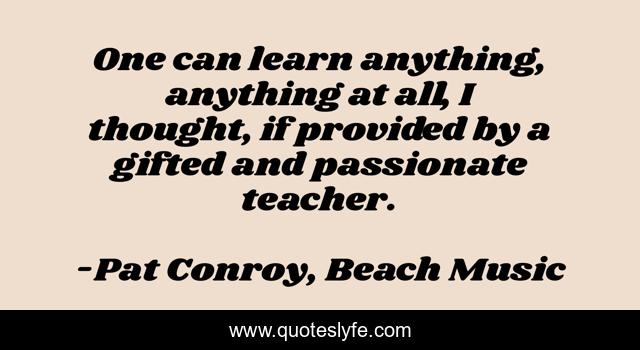 This page presents the quote "One can learn anything, anything at all, I thought, if provided by a gifted and passionate teacher.". Author of this quote is Pat Conroy, Beach Music. .