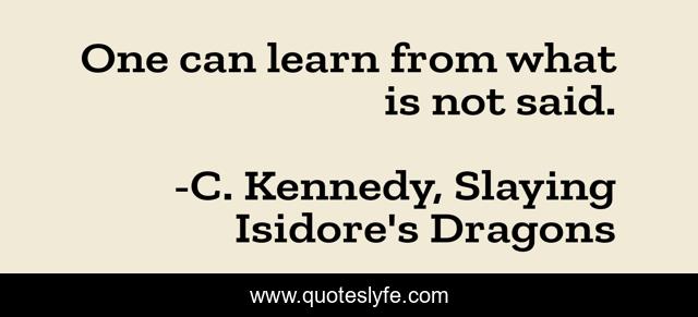 This page presents the quote "One can learn from what is not said.". Author of this quote is C. Kennedy, Slaying Isidore's Dragons. This quote is about love, young-adult-romance, learning, education, psychology, lgbtqia, romance, abuse-recovery, romance-novels,.