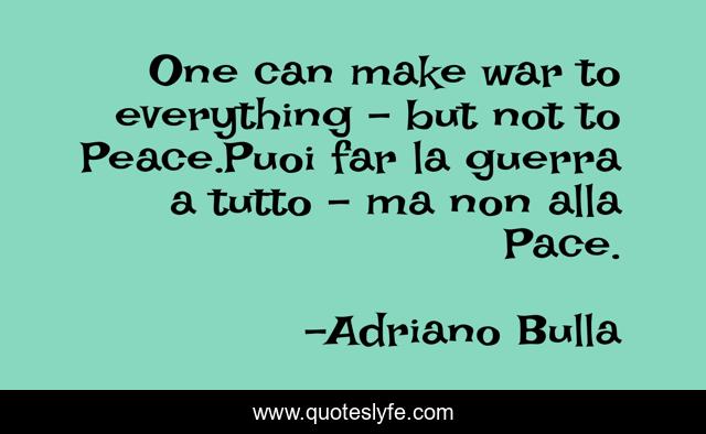 This page presents the quote "One can make war to everything - but not to Peace.Puoi far la guerra a tutto - ma non alla Pace.". Author of this quote is Adriano Bulla. .