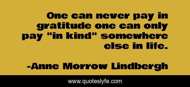 "Anne Morrow Lindbergh Quotes." Quoteslyfe.com, 2025. Fri. 05 Dec. 2025. <https://www.quoteslyfe.com/quote/One-can-never-pay-in-gratitude-one-265434>.