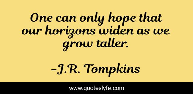 This page presents the quote "One can only hope that our horizons widen as we grow taller.". Author of this quote is J.R. Tompkins. This quote is about maturing, anti-discrimination, becoming-wise, growing-up,.