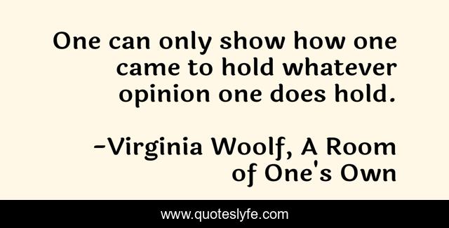 This page presents the quote "One can only show how one came to hold whatever opinion one does hold.". Author of this quote is Virginia Woolf, A Room of One's Own. .