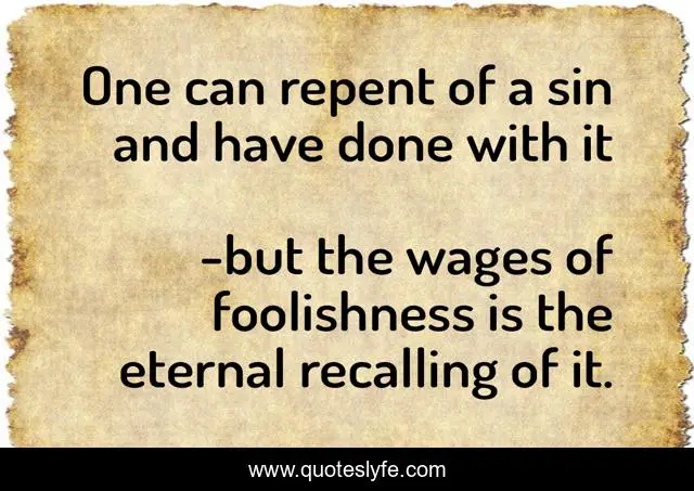 "but the wages of foolishness is the eternal recalling of it. Quotes." Quoteslyfe.com, 2025. Fri. 05 Dec. 2025. <https://www.quoteslyfe.com/quote/One-can-repent-of-a-sin-and-177902>.