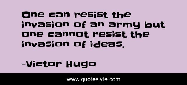 This page presents the quote "One can resist the invasion of an army but one cannot resist the invasion of ideas.". Author of this quote is Victor Hugo. This quote is about resist, ideas, army,.