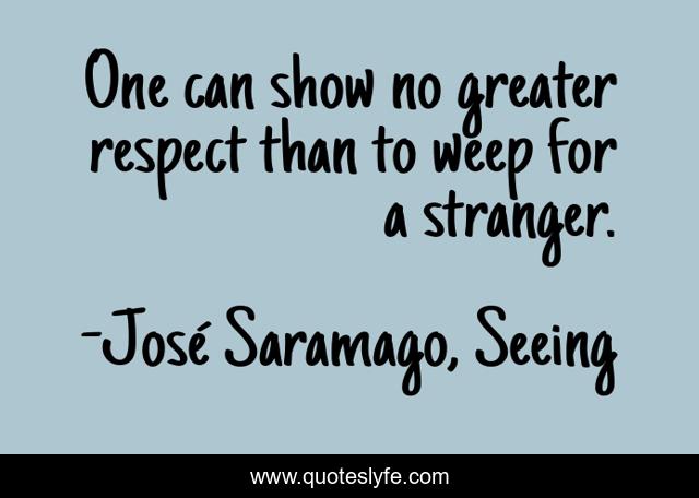 This page presents the quote "One can show no greater respect than to weep for a stranger.". Author of this quote is José Saramago, Seeing. .