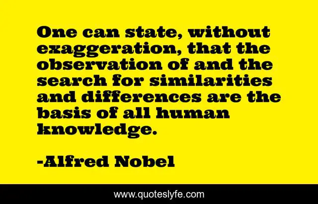 This page presents the quote "One can state, without exaggeration, that the observation of and the search for similarities and differences are the basis of all human knowledge.". Author of this quote is Alfred Nobel. This quote is about search, differences,.