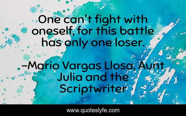 This page presents the quote "One can't fight with oneself, for this battle has only one loser.". Author of this quote is Mario Vargas Llosa, Aunt Julia and the Scriptwriter. .