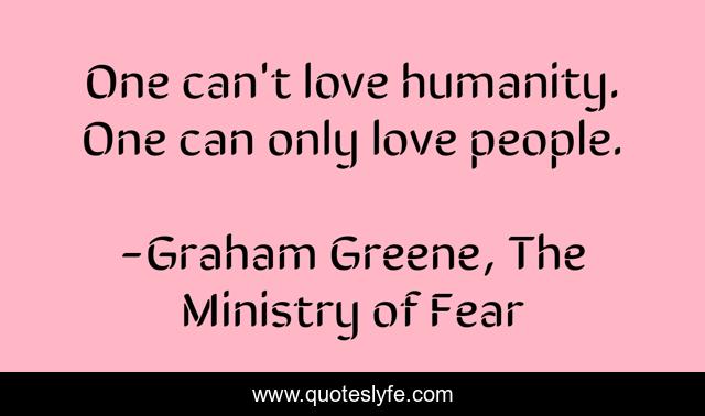 "Graham Greene, The Ministry of Fear Quotes." Quoteslyfe.com, 2025. Tue. 09 Dec. 2025. <https://www.quoteslyfe.com/quote/One-can-t-love-humanity-One-can-256978>.