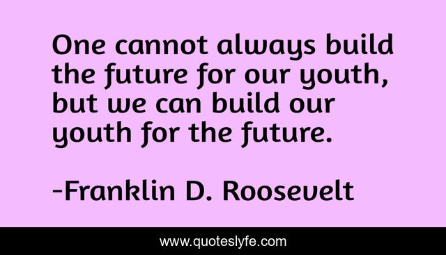 This page presents the quote "One cannot always build the future for our youth, but we can build our youth for the future.". Author of this quote is Franklin D. Roosevelt. .