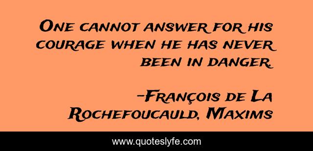 This page presents the quote "One cannot answer for his courage when he has never been in danger.". Author of this quote is François de La Rochefoucauld, Maxims. This quote is about life, courage, cynical, danger,.
