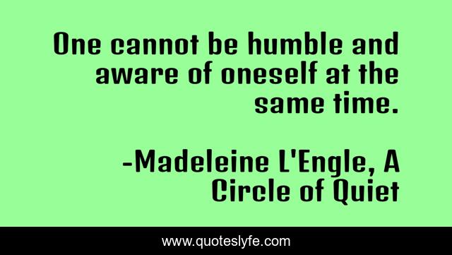 "Madeleine L'Engle, A Circle of Quiet Quotes." Quoteslyfe.com, 2025. Sat. 06 Dec. 2025. <https://www.quoteslyfe.com/quote/One-cannot-be-humble-and-aware-of-179194>.