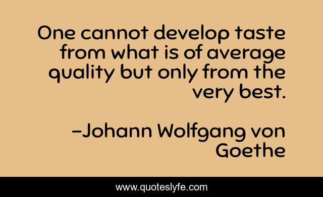 This page presents the quote "One cannot develop taste from what is of average quality but only from the very best.". Author of this quote is Johann Wolfgang von Goethe. This quote is about taste, average, quality,.