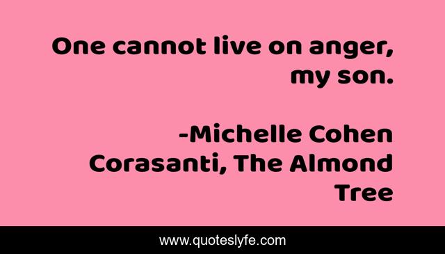 "Michelle Cohen Corasanti, The Almond Tree Quotes." Quoteslyfe.com, 2025. Fri. 05 Dec. 2025. <https://www.quoteslyfe.com/quote/One-cannot-live-on-anger-my-son-115577>.