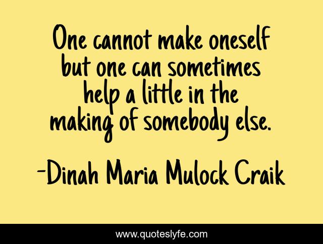 This page presents the quote "One cannot make oneself but one can sometimes help a little in the making of somebody else.". Author of this quote is Dinah Maria Mulock Craik. This quote is about helping, people,.