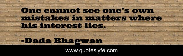 This page presents the quote "One cannot see one’s own mistakes in matters where his interest lies.". Author of this quote is Dada Bhagwan. This quote is about fault, spiritual, mistake,.