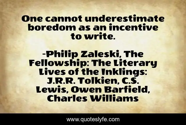 "Philip Zaleski, The Fellowship: The Literary Lives of the Inklings: J.R.R. Tolkien, C.S. Lewis, Owen Barfield, Charles Williams Quotes." Quoteslyfe.com, 2025. Fri. 05 Dec. 2025. <https://www.quoteslyfe.com/quote/One-cannot-underestimate-boredom-as-an-incentive-187404>.