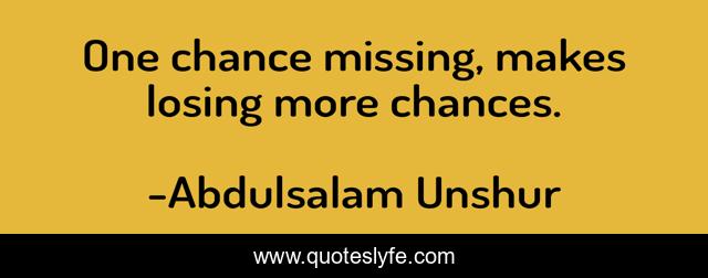 This page presents the quote "One chance missing, makes losing more chances.". Author of this quote is Abdulsalam Unshur. This quote is about politics, chance, opportunity, lose,.