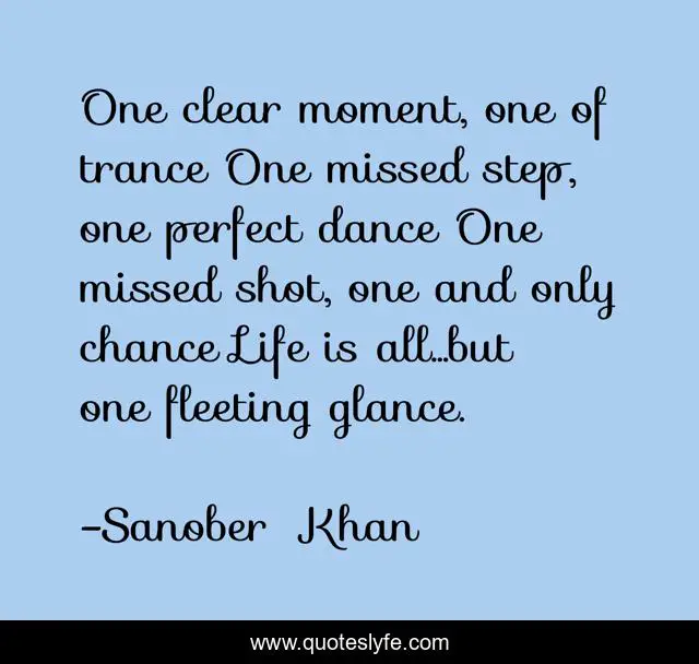 "Sanober Khan Quotes." Quoteslyfe.com, 2025. Mon. 08 Dec. 2025. <https://www.quoteslyfe.com/quote/One-clear-moment-one-of-trance-One-116050>.