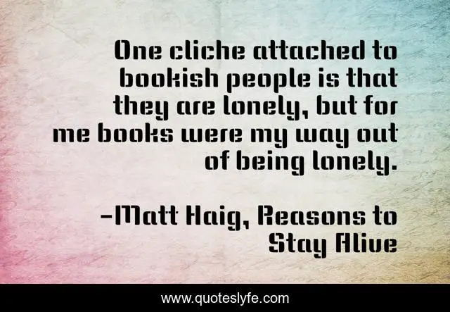 This page presents the quote "One cliche attached to bookish people is that they are lonely, but for me books were my way out of being lonely.". Author of this quote is Matt Haig, Reasons to Stay Alive. This quote is about anxiety, depression,.