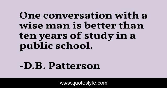 This page presents the quote "One conversation with a wise man is better than ten years of study in a public school.". Author of this quote is D.B. Patterson. This quote is about chinese-proverb, wisdom,.