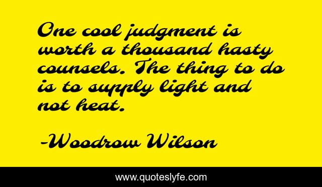 This page presents the quote "One cool judgment is worth a thousand hasty counsels. The thing to do is to supply light and not heat.". Author of this quote is Woodrow Wilson. This quote is about light, heat, supply,.
