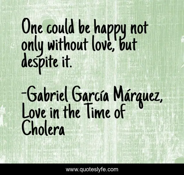 This page presents the quote "One could be happy not only without love, but despite it.". Author of this quote is Gabriel García Márquez, Love in the Time of Cholera. This quote is about life, love, happiness, affection,.