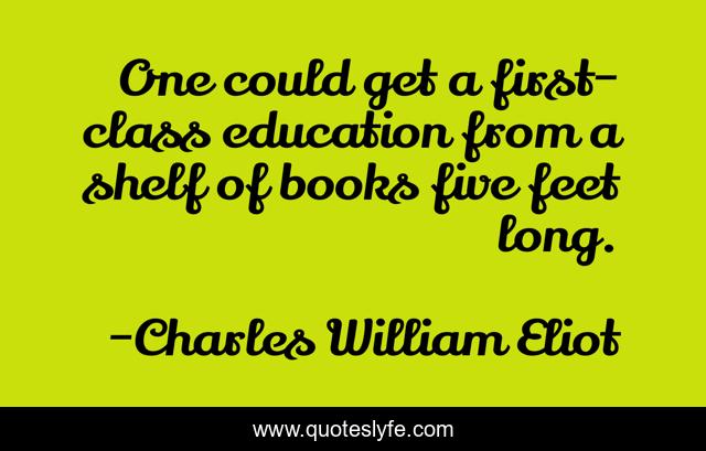 This page presents the quote "One could get a first-class education from a shelf of books five feet long.". Author of this quote is Charles William Eliot. .