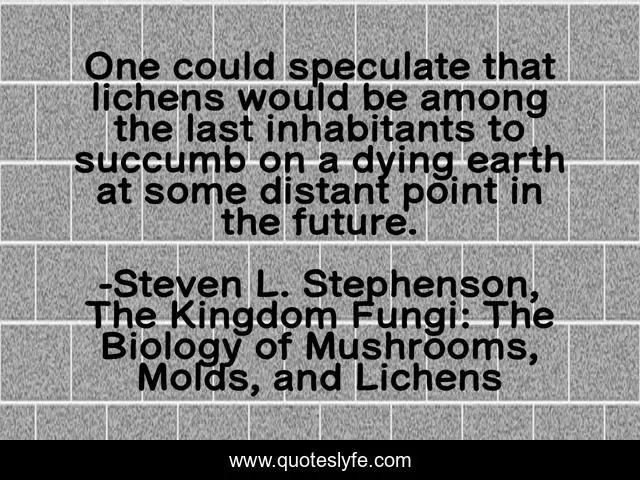 "Steven L. Stephenson, The Kingdom Fungi: The Biology of Mushrooms, Molds, and Lichens Quotes." Quoteslyfe.com, 2025. Sat. 06 Dec. 2025. <https://www.quoteslyfe.com/quote/One-could-speculate-that-lichens-would-be-281350>.