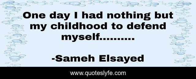 This page presents the quote "One day I had nothing but my childhood to defend myself..........". Author of this quote is Sameh Elsayed. This quote is about experience-plus, childhood, human-development, sameh-elsayed,.