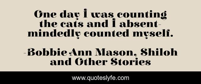This page presents the quote "One day I was counting the cats and I absent-mindedly counted myself.". Author of this quote is Bobbie Ann Mason, Shiloh and Other Stories. .