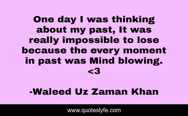 This page presents the quote "One day I was thinking about my past, It was really impossible to lose because the every moment in past was Mind blowing. <3". Author of this quote is Waleed Uz Zaman Khan. .