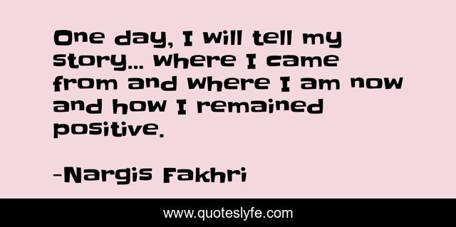 This page presents the quote "One day, I will tell my story... where I came from and where I am now and how I remained positive.". Author of this quote is Nargis Fakhri. This quote is about story, day,.