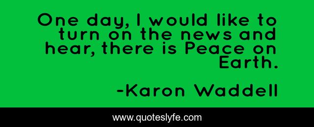 This page presents the quote "One day, I would like to turn on the news and hear, there is Peace on Earth.". Author of this quote is Karon Waddell. This quote is about peace, peace-on-earth,.
