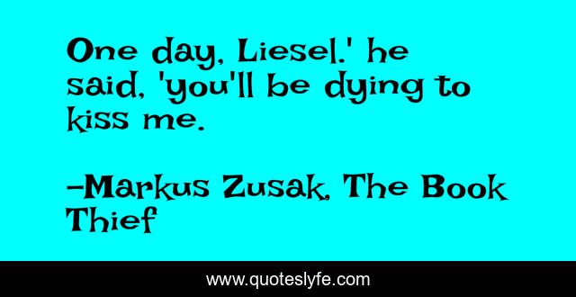 This page presents the quote "One day, Liesel.' he said, 'you'll be dying to kiss me.". Author of this quote is Markus Zusak, The Book Thief. .