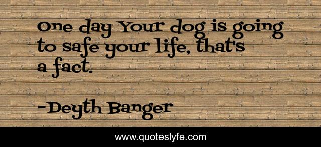 This page presents the quote "One day Your dog is going to safe your life, that's a fact.". Author of this quote is Deyth Banger. This quote is about life, safe, dog, fact,.