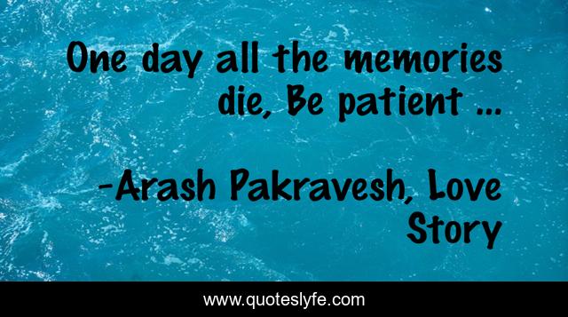 This page presents the quote "One day all the memories die, Be patient ...". Author of this quote is Arash Pakravesh, Love Story. This quote is about die, patient, memory,.
