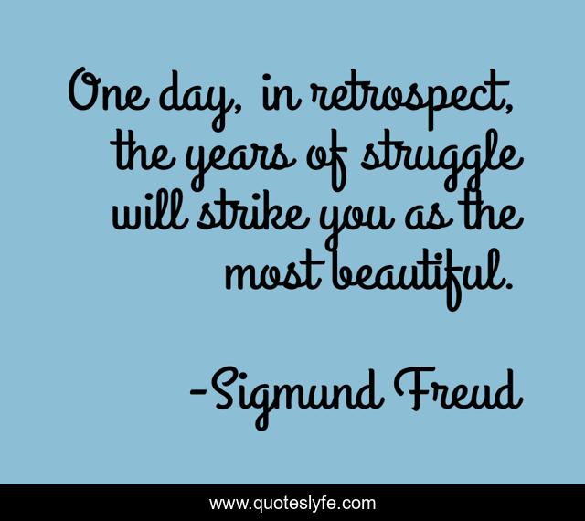 This page presents the quote "One day, in retrospect, the years of struggle will strike you as the most beautiful.". Author of this quote is Sigmund Freud. This quote is about enthusiasm, inspirational,.