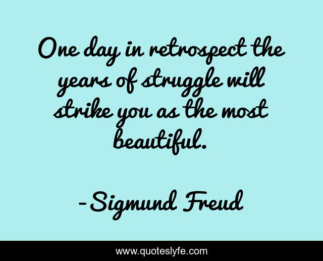 This page presents the quote "One day in retrospect the years of struggle will strike you as the most beautiful.". Author of this quote is Sigmund Freud. This quote is about days, difficult,.