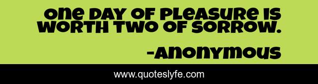 This page presents the quote "One day of pleasure is worth two of sorrow.". Author of this quote is Anonymous. This quote is about day, one,.