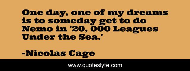 This page presents the quote "One day, one of my dreams is to someday get to do Nemo in '20, 000 Leagues Under the Sea.'". Author of this quote is Nicolas Cage. This quote is about day, sea, one day,.