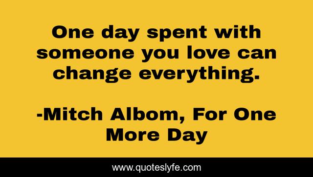 "Mitch Albom, For One More Day Quotes." Quoteslyfe.com, 2025. Mon. 08 Dec. 2025. <https://www.quoteslyfe.com/quote/One-day-spent-with-someone-you-love-372>.