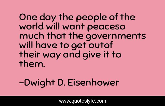 This page presents the quote "One day the people of the world will want peaceso much that the governments will have to get outof their way and give it to them.". Author of this quote is Dwight D. Eisenhower. This quote is about peace, governments,.