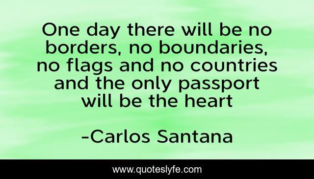 This page presents the quote "One day there will be no borders, no boundaries, no flags and no countries and the only passport will be the heart". Author of this quote is Carlos Santana. This quote is about globalization, social,.