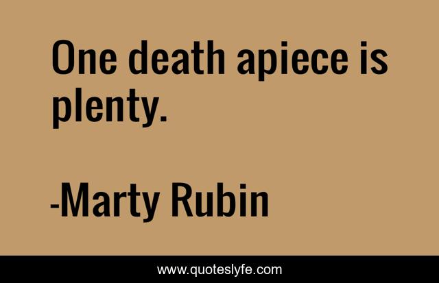 "Marty Rubin Quotes." Quoteslyfe.com, 2025. Sat. 06 Dec. 2025. <https://www.quoteslyfe.com/quote/One-death-apiece-is-plenty-22042>.